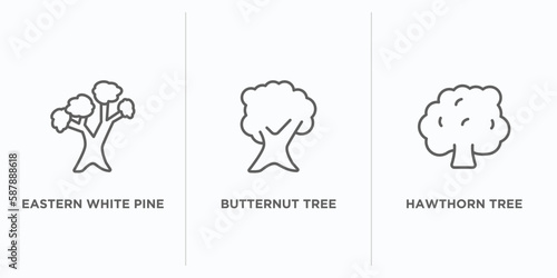 nature outline icons set. thin line icons such as eastern white pine tree, butternut tree, hawthorn tree vector. linear icon sheet can be used web and mobile