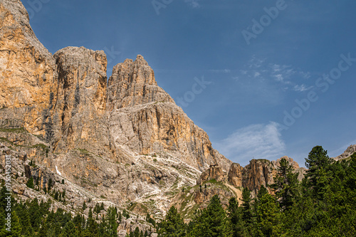 nature sceneries along a trail inside the Catinaccio mountain range, Dolomites, Val di Fassa, Trento, Italy