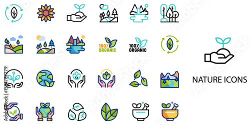 Nature simple concept 24 icons set. Vector Illustration.
