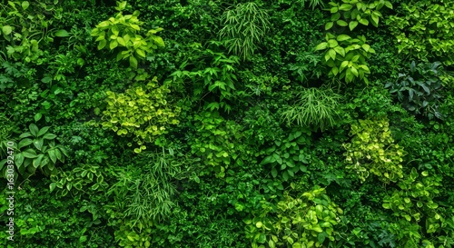 Nature wallpaper. Dense Green Plant Wall with Lush Foliage Texture Background