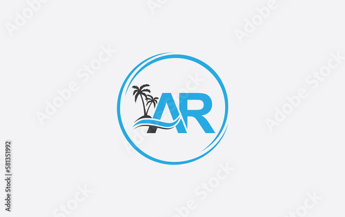 Nature water wave and beach tree logo design with the letters and alphabets