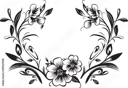 Natures Doodles Hand Drawn Black Emblem Intricate Floral Patterns Black Vector Icon