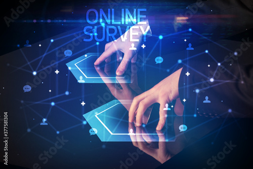 Navigating social networking with ONLINE SURVEY inscription, new media concept