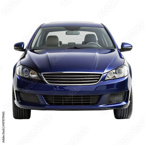 navy blue car front view isolated on transparent white background, clipping path