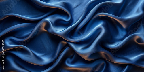 navy blue elegant abstract background silk satin fabric nice folds beautiful dark blue background wavy lines copy space