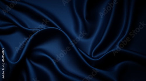 Navy Blue Silk Satin Fabric with a Luxurious Shiny Texture, Elegant Flowing Drapes, and Deep Rich Tones