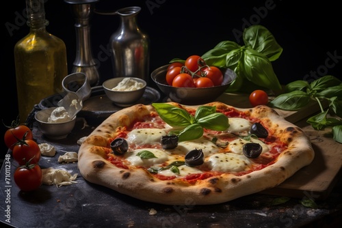 Neapolitan pizza close-up, delicious fresh pizza on a wooden table