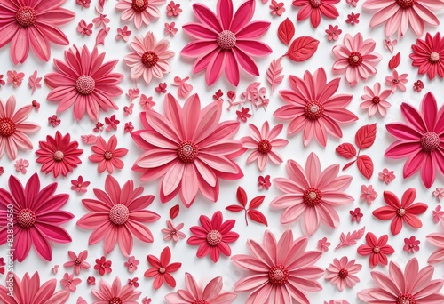 neat design with flower shapes in varying shades of pink on a white backdrop, symbolizing the beauty and charm of a blooming garden