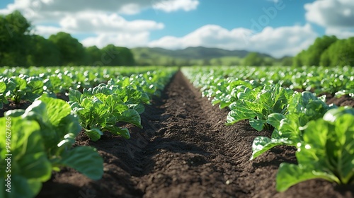 Neat rows of crops stretch into the distance, painting a vibrant field of green.