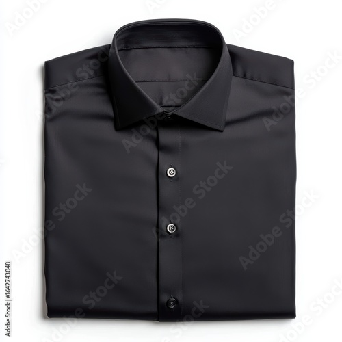 Neatly folded black button up dress shirt with classic collar, perfect for formal occasions
