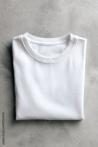 Neatly Folded Plain White T-Shirt on Grey Concrete Background.
