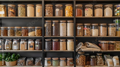 Neatly Organized Raw Ingredients Pantry with Nuts, Seeds, and Dried Fruits for Healthy Eating Enthusiasts