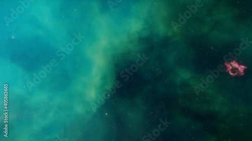 nebula gas cloud in deep outer space, science fiction illustrarion, colorful space background with stars 3d render