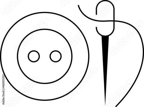 Needle Thread Button Needlework Vector Art. Black and white. White background. One line drawing.