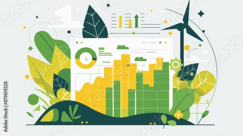 Negative growth financial data, sustainable tech, nextgen energy storage, flat design illustration