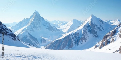Neige poudreuse couvre les montagnes blanches, mountain range, serene, snow covered mountains