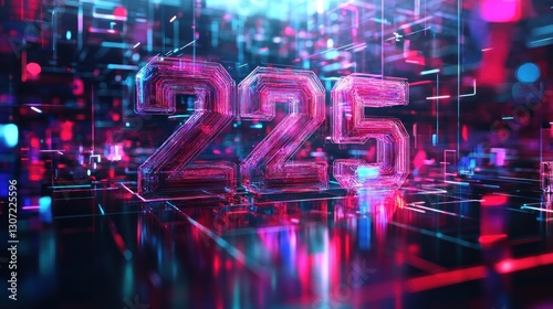 Neon 225 digital number futuristic city background
