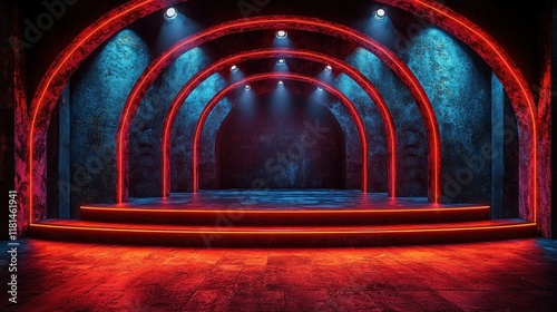 Neon Archway Stage: Cyberpunk Red and Blue Glowing Lights