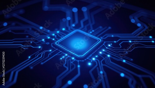 Neon Blue Digital Circuit Board with Energy Pulses Design