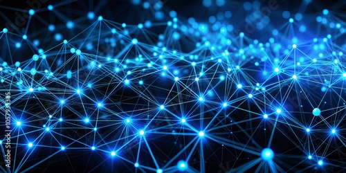 Neon Blue Interconnected Digital Network - Abstract Technology Concept with Complex Lines and Glowing Nodes, Depth and Dynamism - Futuristic Innovation Artwork for Design