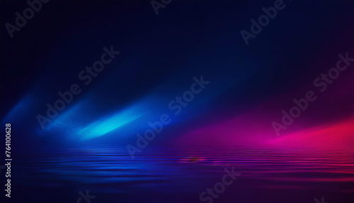 Neon blur glow. Defocused blue pink red ultraviolet radiance soft texture on dark black abstract empty space background. Color light overlay. Copy space.