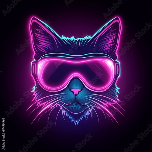 Neon Cat with Goggles, Cyberpunk Animal Illustration