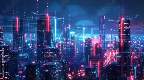 Neon Cityscape - Futuristic Urban Landscape Illuminated by Vibrant Colors