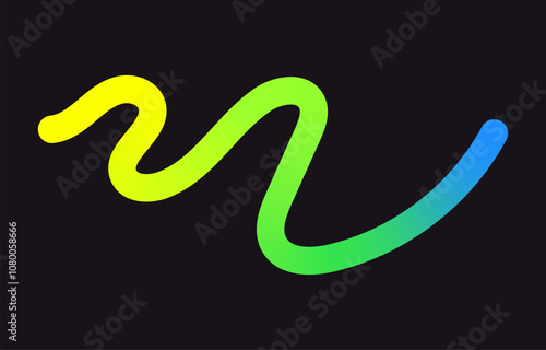 Neon Color Gradient squiggle lines. Scribble stripe with wavy elements. Abstract organic dynamic colorful Shapes on dark background.