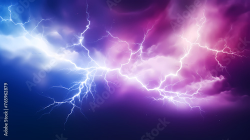 Neon colored lines of lightning passing through the clouds