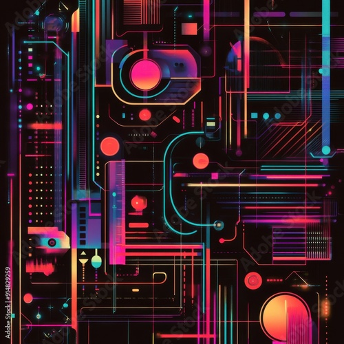 Neon Cyberpunk Dreamscape - Abstract Futuristic Design with Dark Backgrounds and Vibrant Patterns