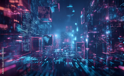 Neon Data Stream: Futuristic Abstract Technology Background