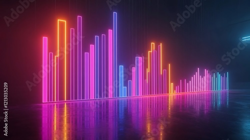 Neon digital bar graph representing financial improvement on a sleek surface