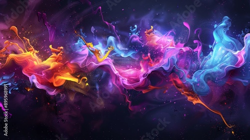 Neon Dreams, Abstract Modern Design with Vivid Color Splashes on Dark Background.