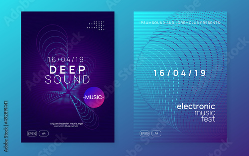 Neon edm flyer. Electro trance music. Techno dj party. Electronic sound event. Club dance poster.