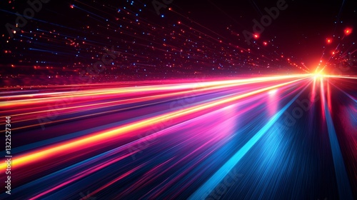 Neon energy light creates a glowing, motion-blurred line against a light backdrop