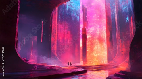 Neon fire patterns in an abstract futuristic space
