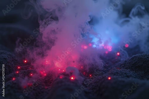 Neon Flames and Swirling Smoke Rising From Dark Fabric, Creating An Ethereal, Mystical Atmosphere