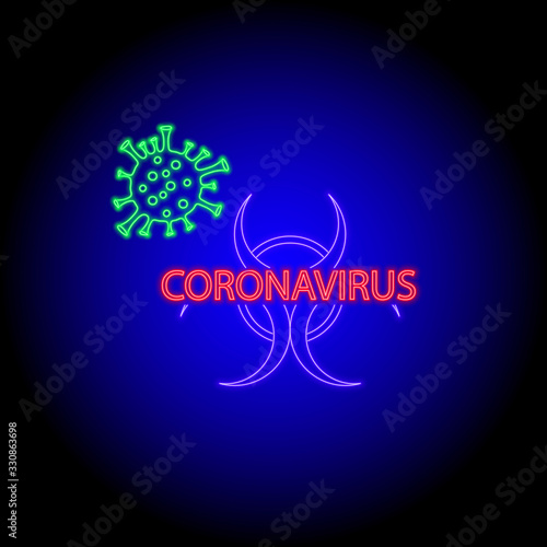 neon flat icon of medicine coronavirus bacterium, n-cov, microbiology