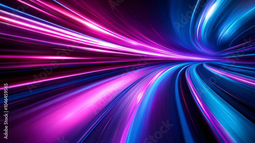 Neon futuristic flashes on black background. Motion light lines backdrop. For banner, postcard, illustration. Blur neon light. Lens flare overlay. Bokeh fluorescent flash gleam.