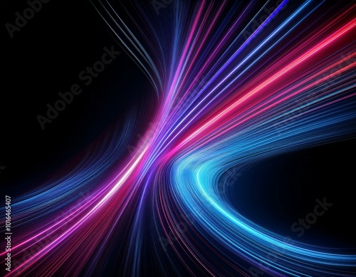 Neon futuristic flashes on black background. Motion light lines backdrop. For banner, postcard, illustration. Created with generative AI tools