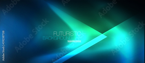 Neon geometric abstract background. Triangles with color glowing light effects in the dark. Vector illustration for covers, banners, flyers and posters and other