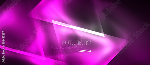 Neon geometric abstract background. Triangles with color glowing light effects in the dark. Vector illustration for covers, banners, flyers and posters and other