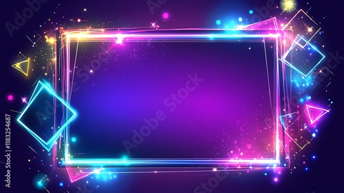 Neon Geometric Frame Glowing Brightly In Purple Background