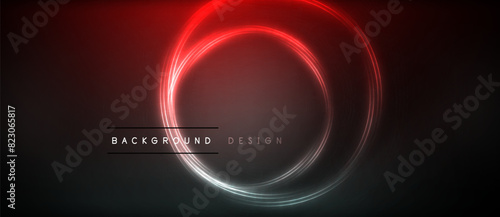 Neon glowing circle rays, light round lines in the dark, planet style neon wave lines. Energetic electric concept design for wallpaper, banner, background