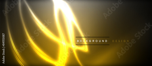 Neon glowing circle rays, light round lines in the dark, planet style neon wave lines. Energetic electric concept design for wallpaper, banner, background