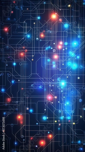 Neon glowing circuitry action digital abstract background graphic design futuristic environment close-up viewpoint