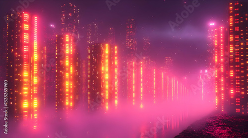 Neon Glowing Futuristic City at Night