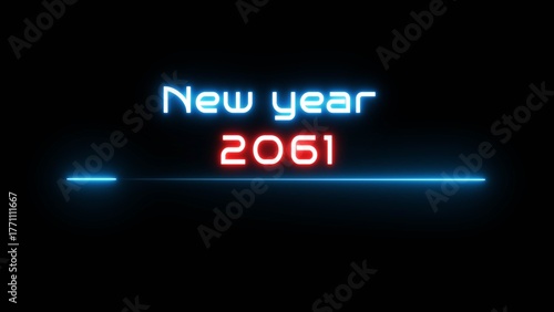 Neon glowing new year text illustration. Neon Happy new year celebration.