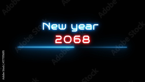 Neon glowing new year text illustration. Neon Happy new year celebration.
