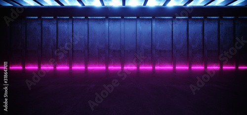 Neon Glowing Studio Purple Blue Vibrant Concrete Room Hallway Tunnel Corridor Empty Background Cyber Virtual Alien Spaceship 3D Rendering